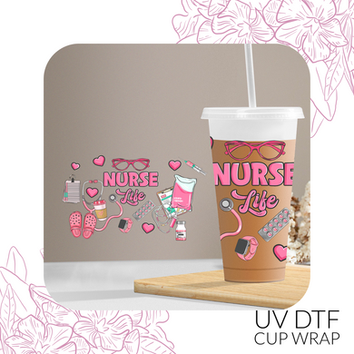 V403-2 Pink Nurse Life UV DTF 24oz Venti Wrap